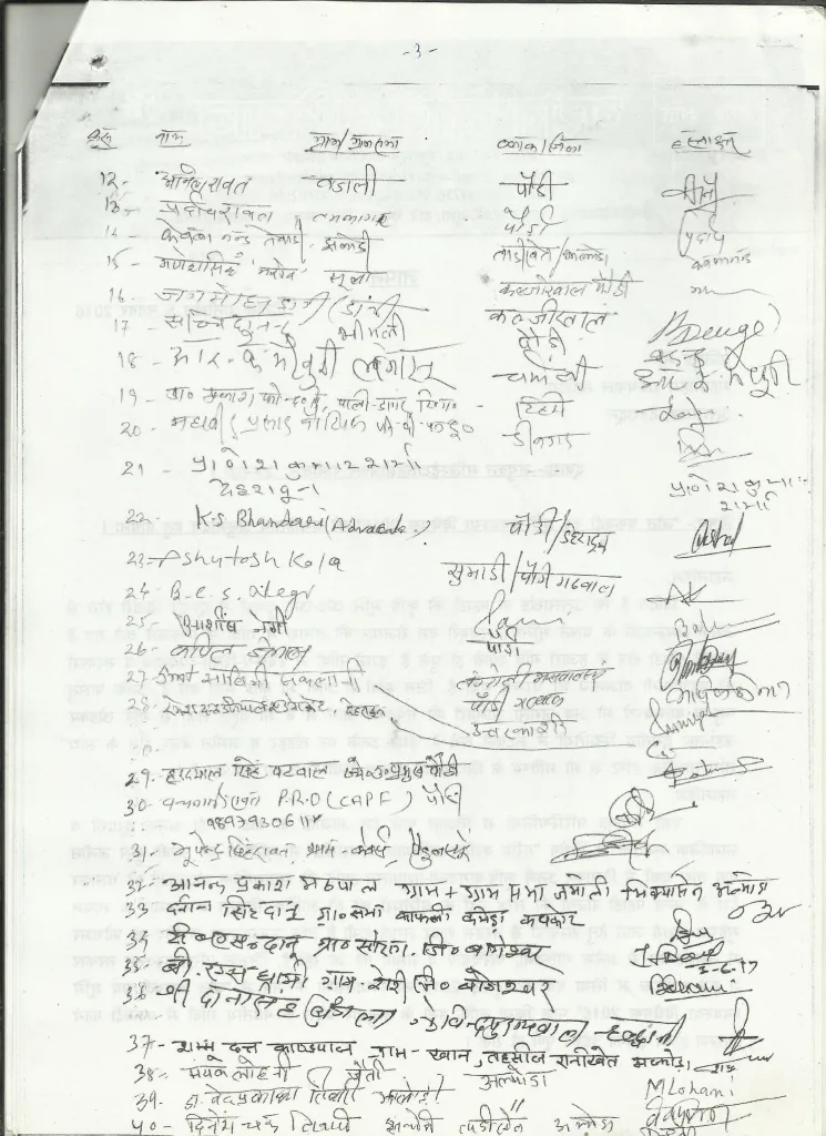 तत्पश्चात बैठक में उपस्थित ग्रामपंचायत के सदस्यों व भूमिधरों की समितियों का गठन करते हुए खतौनियों का सत्यापन आम सभा में पढ़ कर किया गया है आदि. ” (संलग्न- तूफानी दौरा गढ़वाल मंडल का, समाचारों की कटिंग्स, RTI से प्राप्त सूचनाएं 247 to 270 देखें). क्रमश: ….