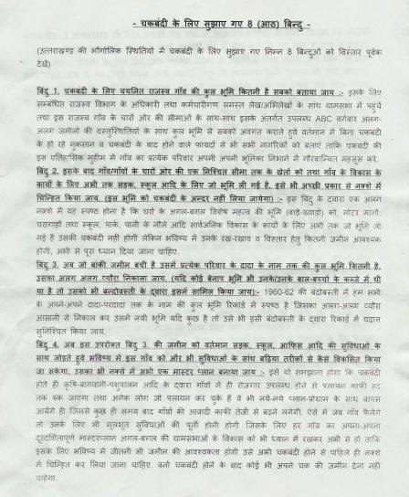 2- शासनादेशों के बाबजूद भी ग्रामपंचायतों में चकबंदी पर चर्चा कराके लोगों को तैयार कराने के बजाय ग्रामप्रधानों से चकबंदी विरोधी/नकारात्मक प्रस्ताव लेकर अपनी जुम्मेदारियों से पल्ला झाड़ रहा है.