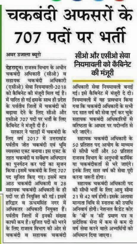 “ धारा 4 (2) का प्रकाशन किया जा रहा है जिसके फलस्वरूप सरकारी गजट में विज्ञप्ति संख्या – उत्तराखंड राजस्व विभाग देहरादून के शासनादेश संख्या – 766 /XVIII(III)/2017-04 (26)/2017 दि० 9-11-2017, शासनादेश संख्या – 821/XVIII (III)/217-04(26)/2017 TC- दि० 16-11-2017 एवं शासनादेश संख्या – 815 XVIII(III)?2017 04(26) 2017 दि० 1-12-2017 से प्राप्त अनुमति के अनुक्रम में उत्तर प्रदेश जोत चकबंदी अधिनियम 1953 (उ०प्र०) अधिनियम संख्या 5 सन 1954 (उत्तराखंड में यथा प्रवृत) की धारा 4 की उपधारा (2) (क) आधीन सरकारी विज्ञप्ति संख्या 3741/ वी०एच०आई०ई०-454/53 दि० 21 नवम्बर 1963 द्वारा प्रतिनिहित अधिकारों का प्रयोग करके शासनादेश संख्या – 85/XVIII(3)/2018-04(26)2017 दि० 26-2-2018 की विज्ञप्ति जारी की गयी है. “